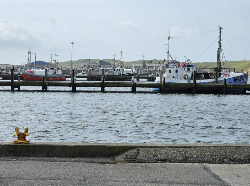 Hvide Sande ist eine Touristenhochburg. Dementsprechend gibt es viele Einkaufsmöglichkeiten. Wir kaufen in der Bäckerei 2 Erdbeertörtchen, 3 Plunderstückchen, ein helles und ein dunkles Körnerbrot. Ein Deutscher sagte uns, das wäre die beste Bäckerei weit und breit.