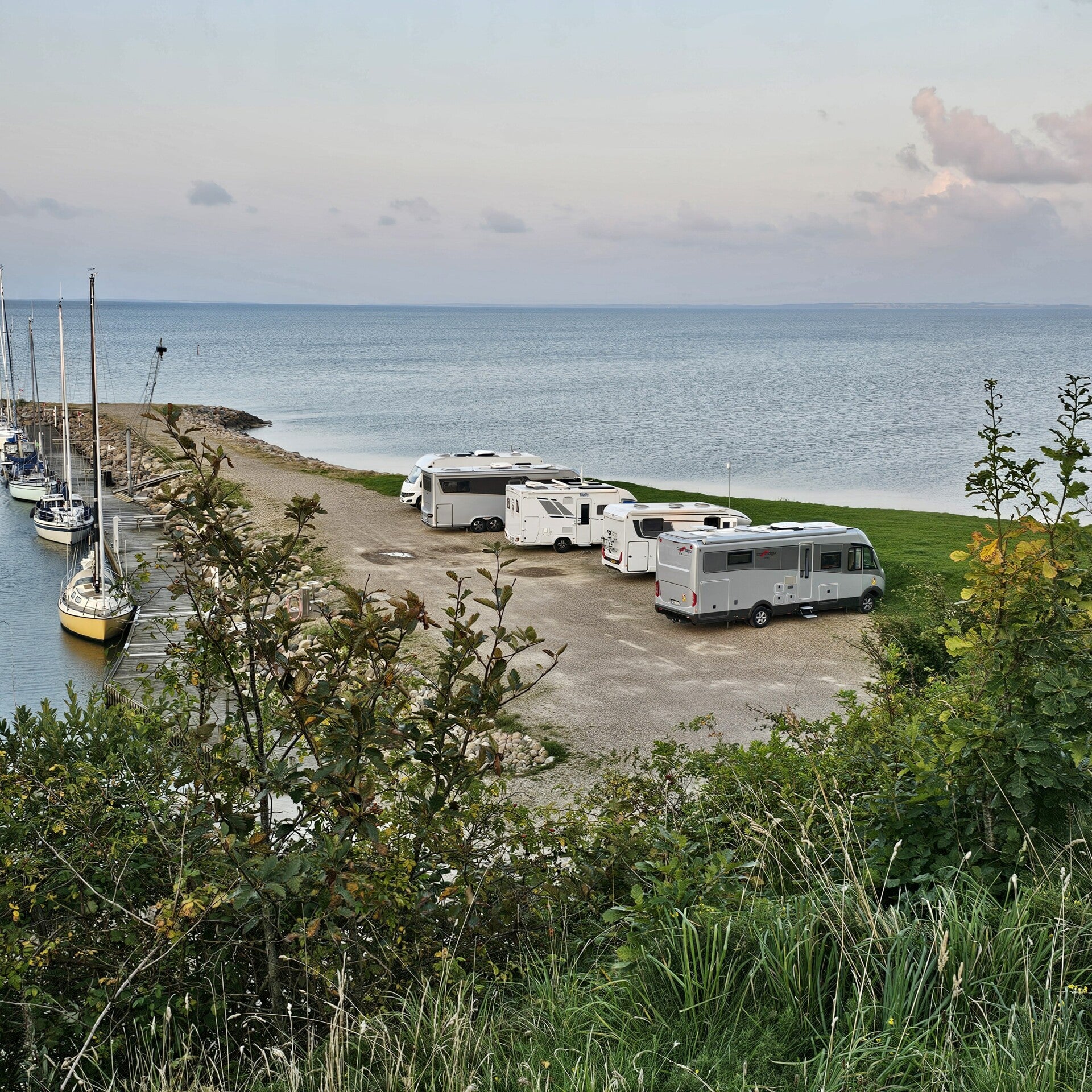 Donnerstag, 29.8, sonnig und wieder schön warm! Nach dem Frühstück fahren wir weiter auf der B11 und B28 auf die Insel Mors, die man über eine Brücke erreicht. Gleich nach der Brücke befindet sich der sehr schöne Stellplatz Sunby Mors Havn mit 8 Plätzen, inkl. Strom und einem tollen Sanitärhaus, in dem sich sogar eine Sauna befindet. Und das alles für 18 Euro. Und Thomas freut sich auf´s angeln. Hoffentlich beißt eine Meerforelle an.