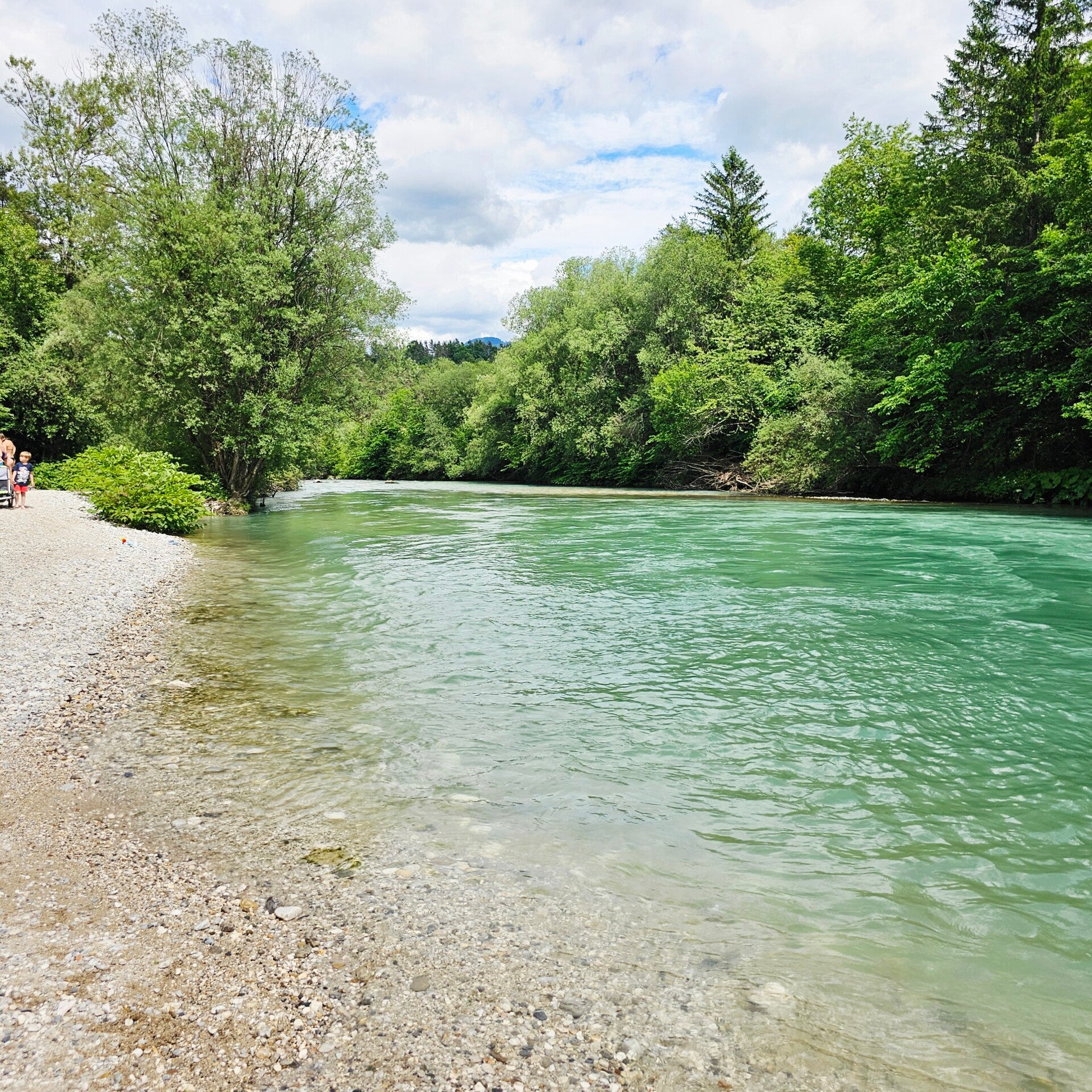 Wir parken also auf einem Autoparkplatz und setzen uns an den See, der sehr klar ist. Man sieht viele Fische schwimmen. Der See hat 15°C und es gibt tatsächlich ein paar Hartgesottene, die darin schwimmen. Wir rollern in die Höhe bis zum Parkplatz für den Savica Wasserfall, aber 553 Stufen führen steil hinauf zum Wasserfall. In gute 20min soll man ihn erreichen aber meine Leiste schmerzt und ich weiß nicht, ob ich das schaffe. Der Eintritt kostet 4,00 Euro.