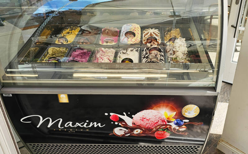 Im Womo angekommen, stellen wir uns erst mal unter die Dusche und kühlen die 40°C im Womo angenehm herunter. Thomas geht noch eine Runde schwimmen. Heute kostet der Eintritt 4 Euro - ohne Musik.
