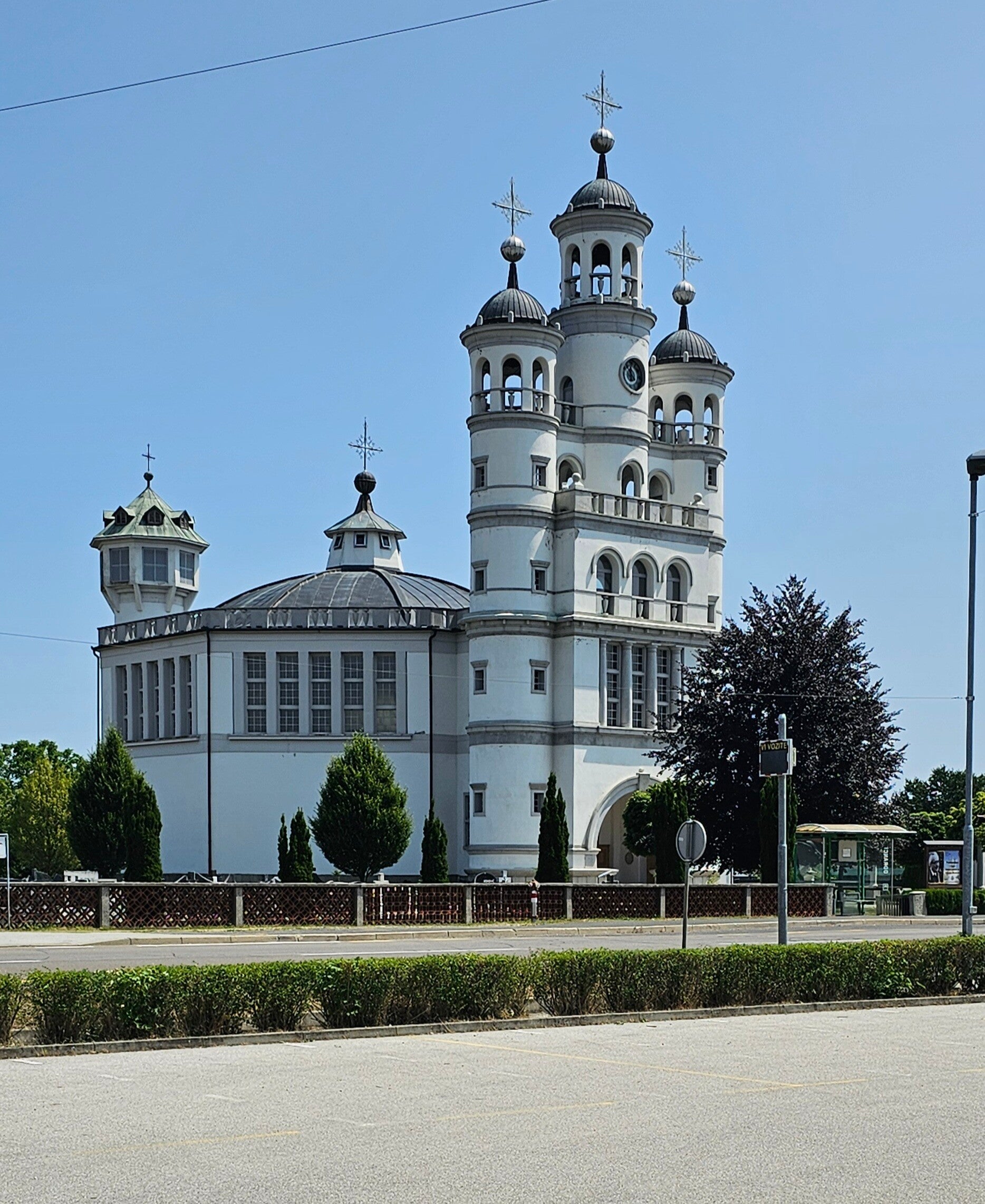 ... und in Pomurje/Odranci sehen wir diese interessante Kirche. Im Ort gibt es auch ein großes Werk von Carthago.