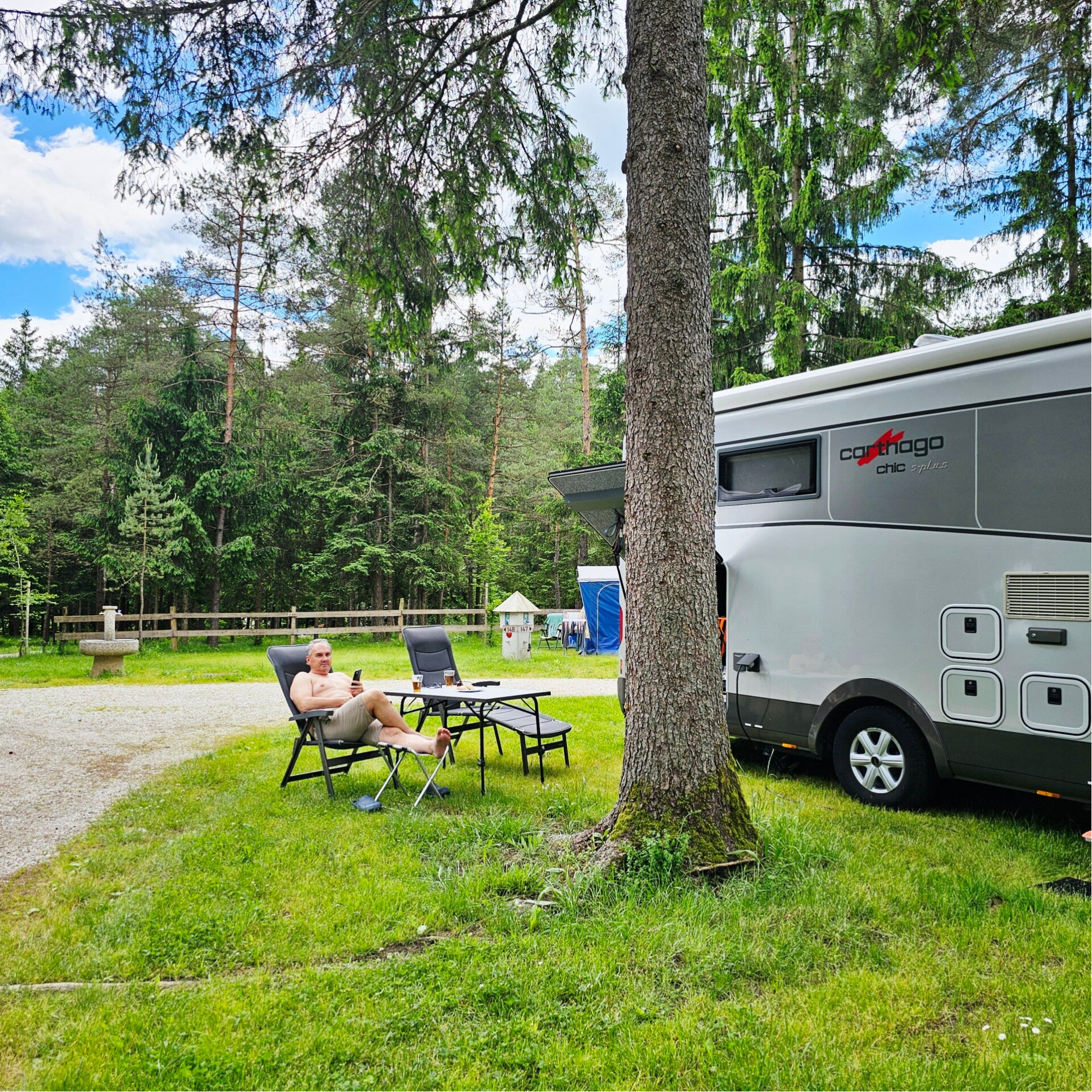 Auch am Stausee Klaus ist alles überlaufen. Na ja, es ist Feiertag und herrliches Wetter. Wir müssen wohin, wo niemand hinfährt. Also ein unattraktiver Ort. Wir finden auf Park4Night einen offiziellen Stellplatz in Micheldorf. In Österreich wird übernachten auf einem Parkplatz hoch bestraft!